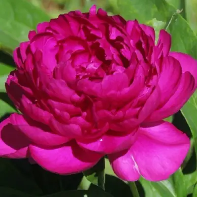 При первом взгляде на этот пион, вы заметите его шаровидные густомахровые цветки, словно огромные малиновые помпоны, возвышающиеся над ярко-зеленой ажурной листвой. Диаметр цветков может достигать до 15 см, что делает их по-настоящему впечатляющими. Высота растения составляет от 85 до 95 см, что позволяет ему великолепно выделяться на фоне других растений.