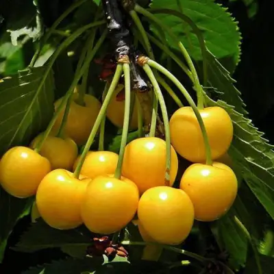 Саженцы черешни Чермашная порадуют вас ягодами средней массой до 4,5 г. Эти округлые плоды имеют ярко-желтую окраску и подходят для употребления в свежем виде. Вкус черешни сладкий, что делает их идеальным угощением для всей семьи. Мякоть плодов нежная и сочная, а косточка средней величины легко отделяется от мякоти, что облегчает процесс употребления.